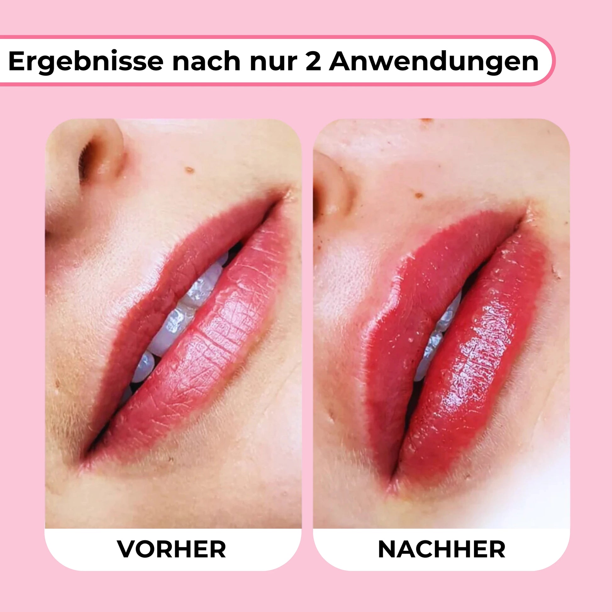 In nur wenigen Minuten und bei einer Anwendung von 2 Mal pro Woche, erhältst du gleichmäßige, vollere Lippen – ganz ohne den Aufwand und die Kurzlebigkeit anderer Methoden.